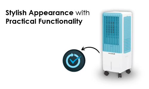 With an approximate water capacity of 25 liters, the Fencer Tower Cooler 25 offers uninterrupted cooling for long hours without frequent refills. Designed to cover an area of up to 130 sq. ft., it is ideal for bedrooms, small living rooms, or office spaces. Its sleek and modern design, combined with high functionality, makes it a perfect addition to any home or workspace.