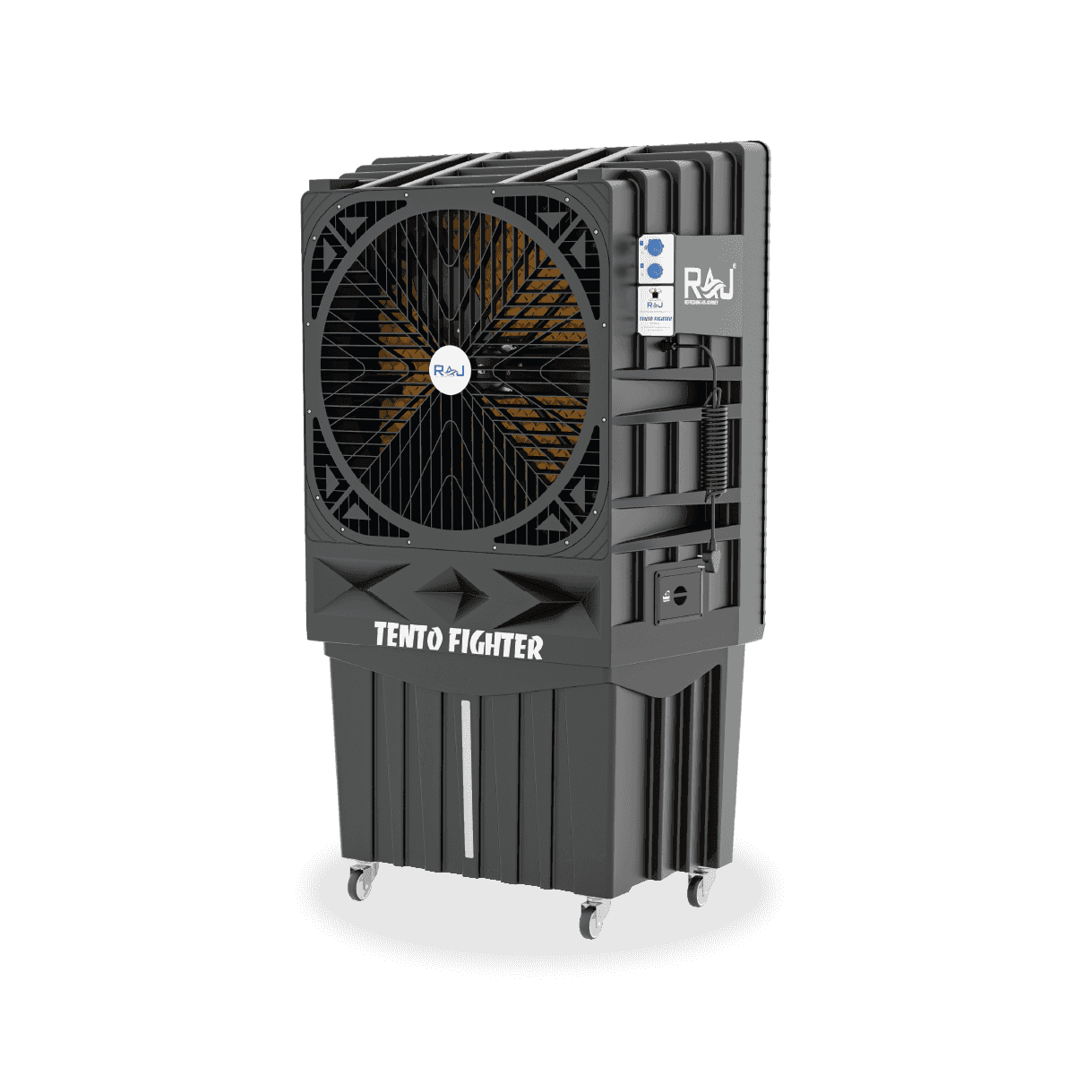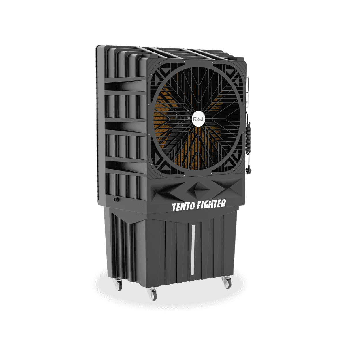 Introducing the TENTO FIGHTER 30, the ultimate air cooler for the tent industry. Equipped with a single-phase 3-speed motor, it delivers powerful airflow to keep your tent area cool and refreshing. With a fan noise level of just 60 dB, it operates quietly, ensuring a peaceful environment. Plus, its movable design allows you to easily adjust it as needed for optimal cooling anywhere.