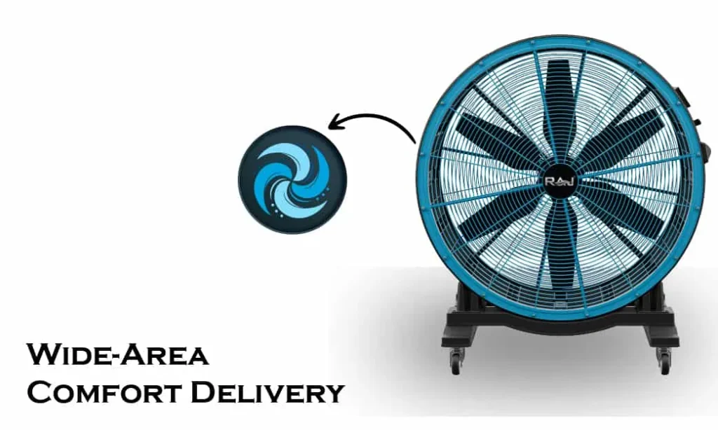 - Mega Airflow – 36-inch fan blade spinning at 550 RPM for wide coverage.