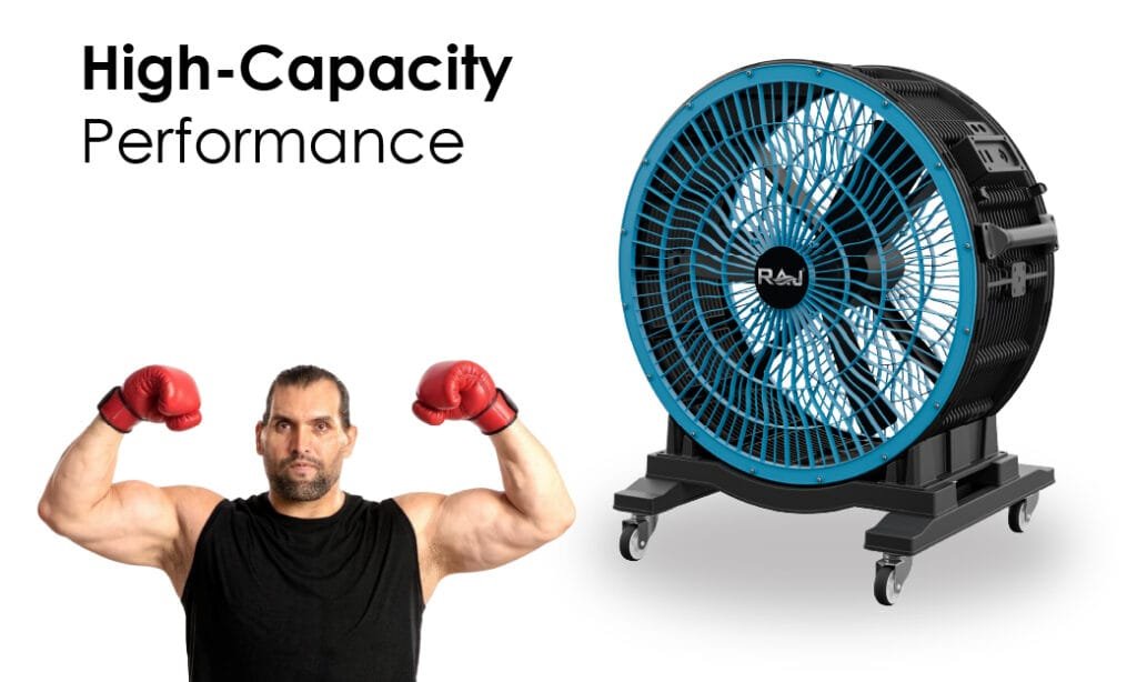 The BOXER FAN 900-A is tailored for heavy-duty cooling requirements with its robust aluminium motor that ensures long-lasting efficiency. Operating on 550 watts of power with a 0.75 horsepower capacity, this fan delivers powerful airflow while maintaining energy efficiency, ideal for industrial and commercial environments.