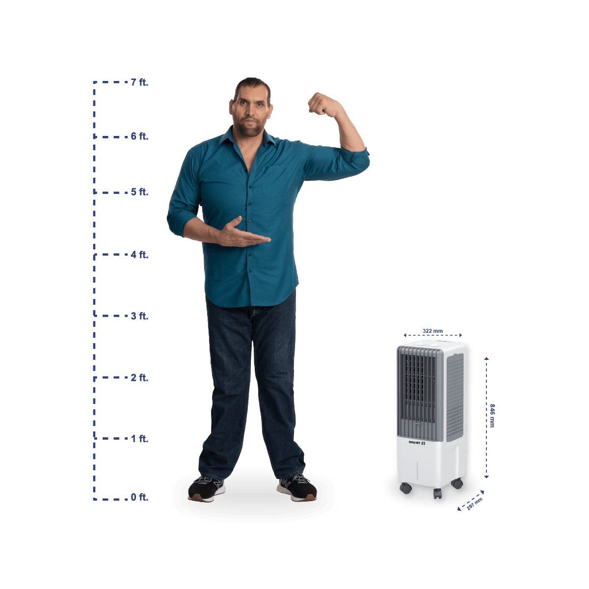 Boasting a 25-liter water tank, the Brizmy Tower Cooler 25 provides continuous cooling for hours without the need for constant refills. Perfectly suited for spaces up to 130 sq. ft., it’s ideal for bedrooms, compact living areas, or offices. Its stylish, modern design paired with practical functionality makes it a great addition to any home or workspace.