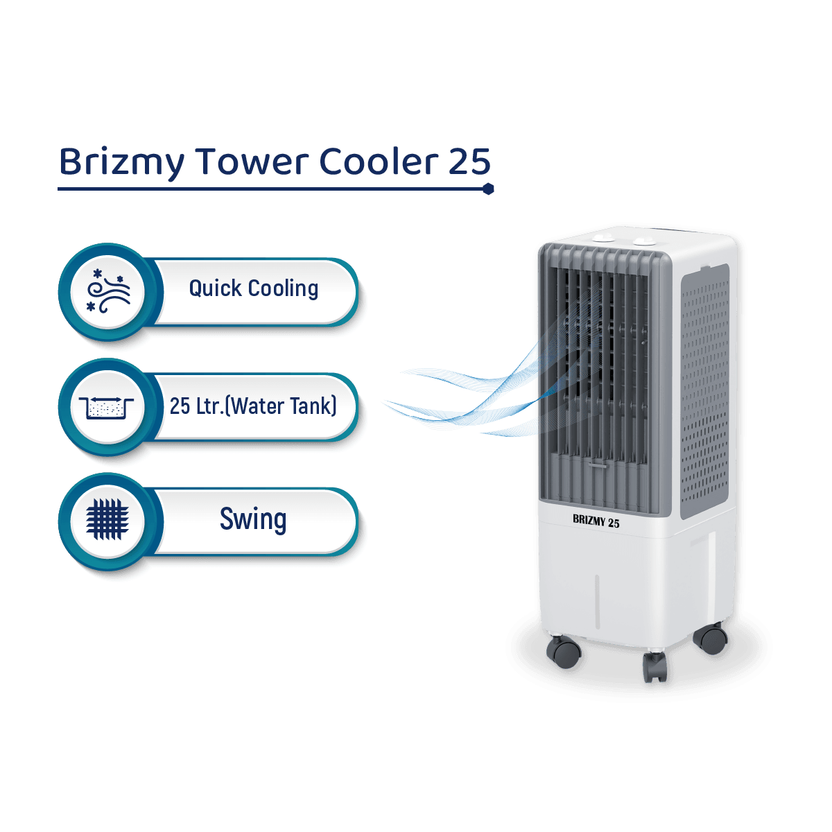 The Brezmy Tower Cooler 25 provides refreshing airflow while keeping power consumption minimal at just 150 watts. Its 20-foot reach spreads cool air evenly, making it ideal for keeping small to medium rooms comfortable with ease.