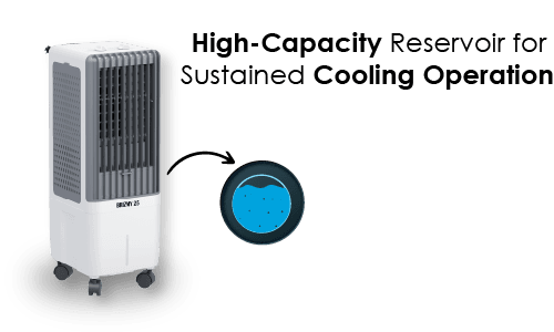 - 25-Liter Water Tank Extended cooling with fewer refills