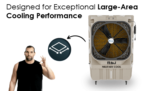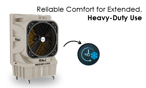 The MILITARY COOL 30150 is engineered for massive, demanding spaces that need powerful and consistent cooling. With a giant 60 ft. air throw and coverage up to 3000 sq. ft., this cooler is the ultimate choice for large halls, factories, outdoor functions, or military camps. Its robust 550-watt motor delivers unstoppable airflow, providing an instant shield against extreme heat.