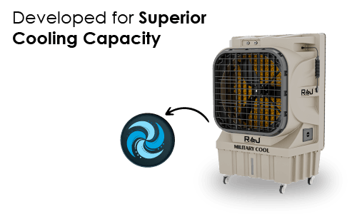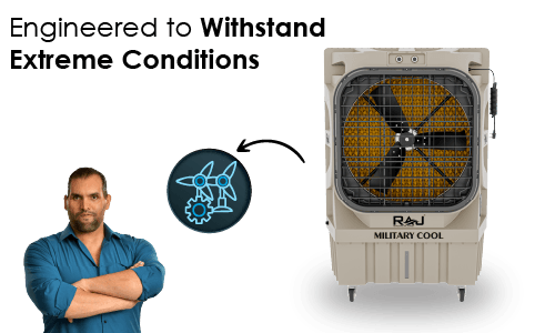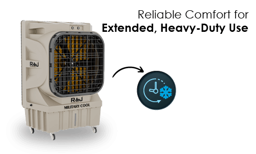 The MILITARY COOL 30150 AS is designed to handle the most challenging cooling tasks. With an extraordinary 60 ft. air throw and a massive coverage area of up to 3000 sq. ft., it is ideal for large industrial warehouses, military camps, outdoor functions, and huge event spaces. Powered by a rugged 550-watt motor, it delivers relentless cooling performance that stands up to the harshest heat.