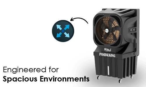 The PANDALKING 20125 is designed to deliver an exceptional cooling experience with a large 125-liter water capacity, ideal for extended usage. Its high-efficiency honeycomb pad ensures superior water retention and better cooling performance. Whether you're hosting an event or need consistent cooling in a large space, this cooler is up to the task with its wide coverage of up to 1400 square feet.