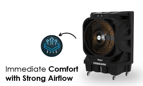 The PANDALKING 30090 is a powerhouse cooler engineered to tackle heat in large spaces effortlessly. With a generous 90-litre water capacity, it provides continuous cooling for hours, making it ideal for big gatherings, events, or industrial settings. The advanced honeycomb pad technology ensures optimal air quality and moisture, keeping every corner refreshingly cool.