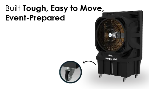 Built for robustness, the PANDALKING 30190 comes with a durable fixed grill for safety and long-lasting performance. Despite its heavy-duty design, it is easy to move thanks to its smooth caster wheels. Whether it's an indoor setup or an outdoor function, this cooler is your reliable partner in maintaining cool, comfortable surroundings.