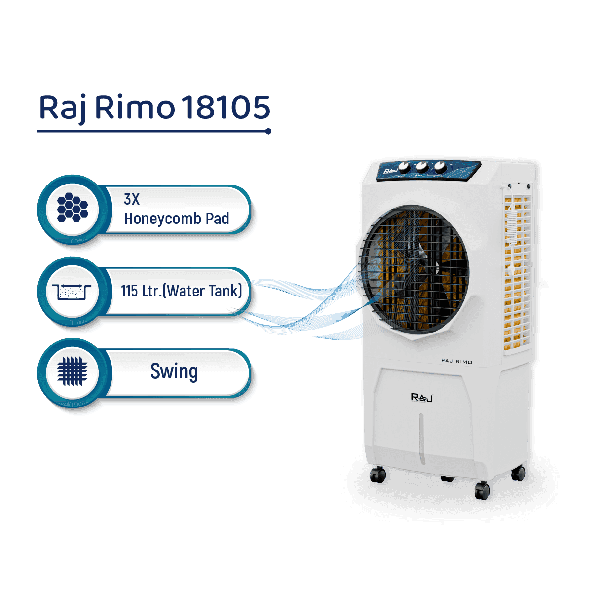 Stay cool effortlessly with the Raj Rimo Air Cooler! Its smart water level indicator ensures you're always informed, making refills quick and hassle-free for uninterrupted cooling.
