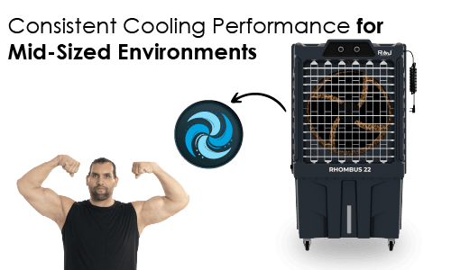 The Rhombus 22125 AS is a heavy-duty air cooler designed to tackle extreme heat in large spaces such as industrial halls, event venues, or open terraces. With a 50 ft air throw and a reach of up to 1600 sq. ft., it ensures maximum air delivery across wide areas. The 400-watt motor ensures consistent and high-speed airflow, delivering reliable cooling performance when and where it’s needed most.