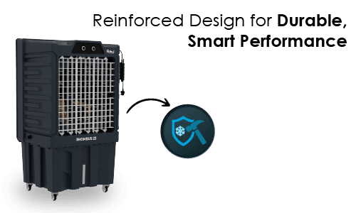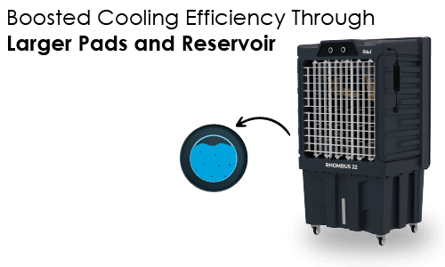 Designed for extended operation, the cooler includes a 125-liter water tank, which supports hours of uninterrupted use without frequent refills. It is fitted with a 1 side honeycomb pad, which retains moisture effectively and helps cool the air faster through optimal evaporation. This combination guarantees efficient and continuous cooling, even during the hottest parts of the day.