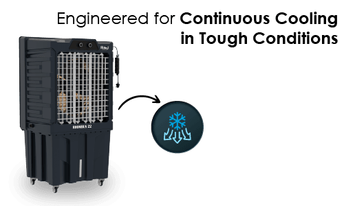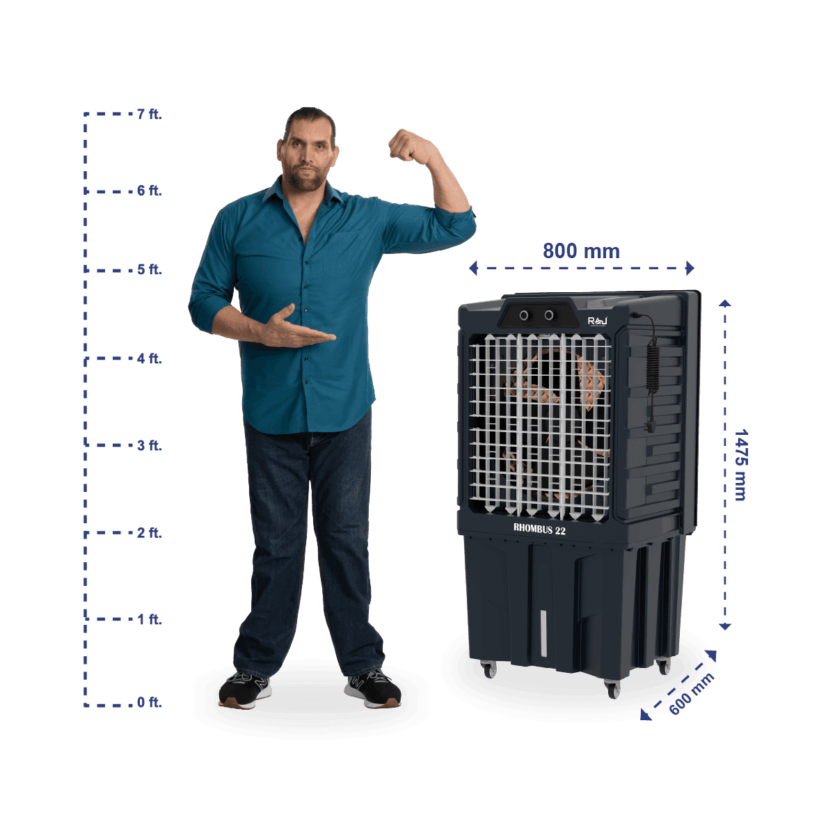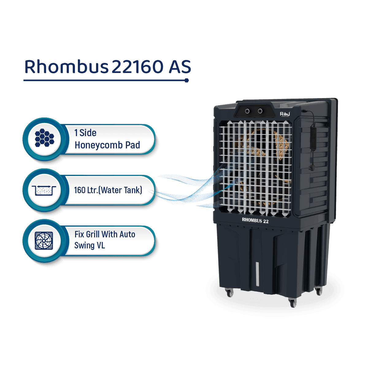 Built for nonstop performance, the enormous 160-liter water tank ensures uninterrupted cooling for long hours without the hassle of constant refilling.The Rhombus 22160 is crafted to meet heavy-duty requirements—perfect for large gatherings, industrial zones, or expansive work environments. With its rugged design and advanced cooling technology, it delivers unmatched reliability and comfort on a grand scale.