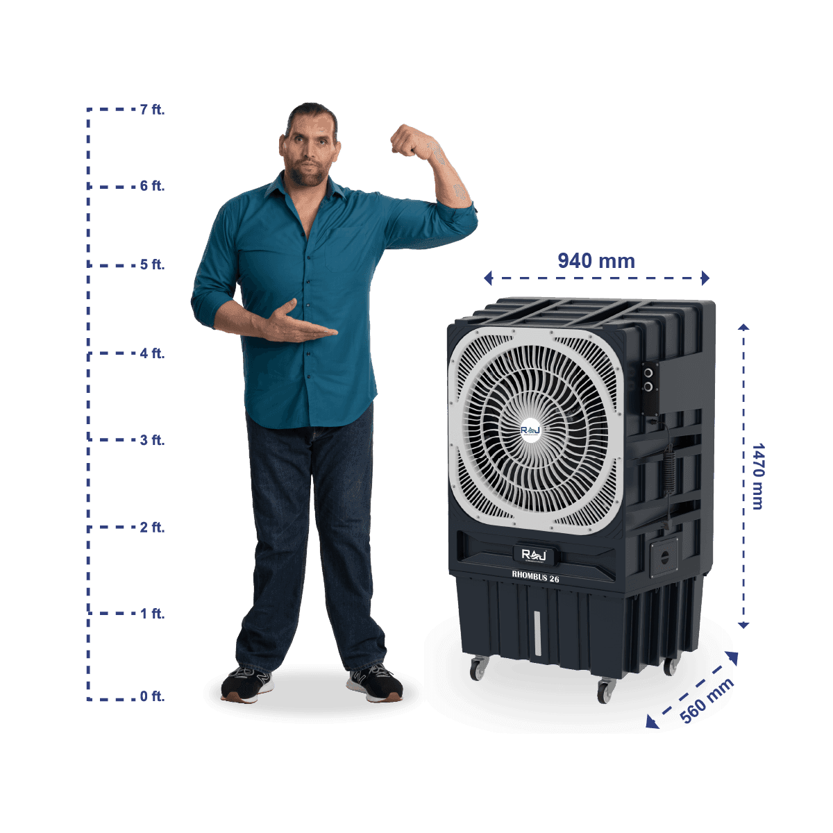 With a powerful airflow of 15,000 CFM, this cooler offers efficient cooling for spaces up to 1700 square feet. It features manual controls for easy operation. The large 200-liter water tank ensures extended periods of cooling. Its 6-way discharge system provides a wide and even distribution of cool air, making it an excellent choice for hot summer conditions.