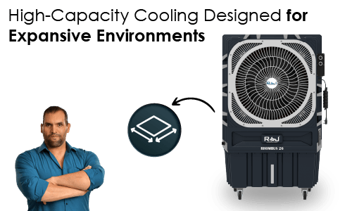 Equipped with a spacious 130-liter water tank, the Rhombus 26130 delivers continuous cooling for extended periods without constant refilling. Ideal for large gatherings, busy warehouses, or open outdoor spaces, it’s engineered to meet demanding cooling needs. With its robust build, high-powered performance, and advanced features, this cooler provides a dependable and efficient solution for keeping large areas comfortably cool.