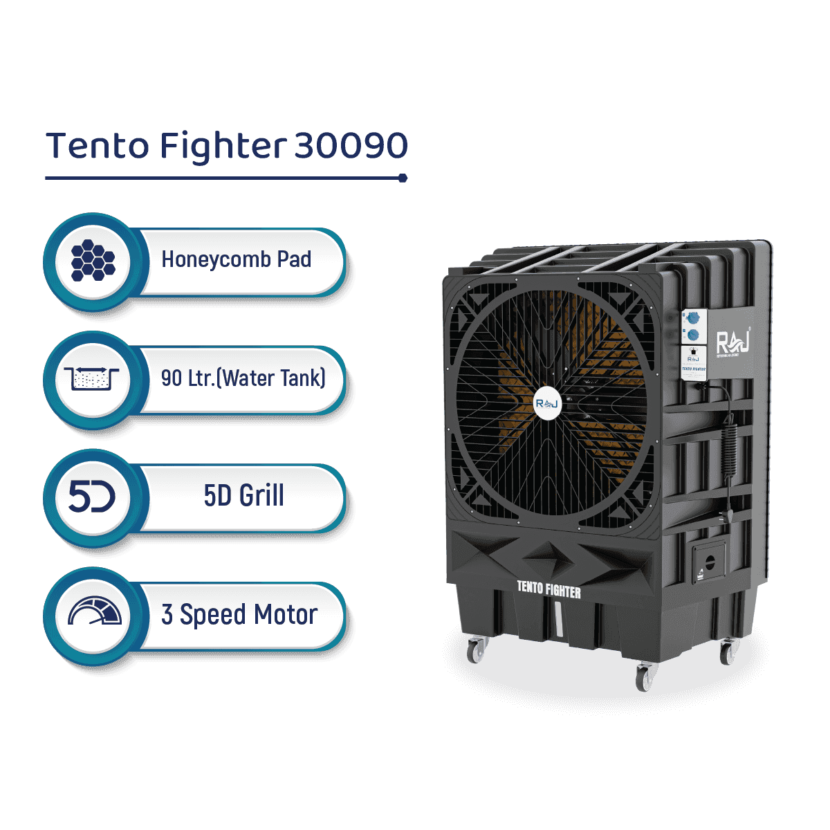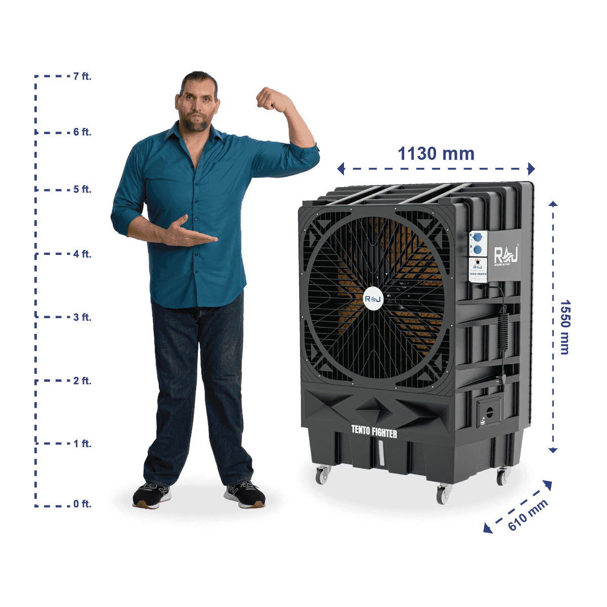 Introducing the TENTO FIGHTER 30, an advanced air cooler designed to meet the rigorous cooling needs of the tent industry. With a 90-liter water tank capacity and exceptional performance, it ensures your tented spaces stay cool and comfortable, even in extreme heat.