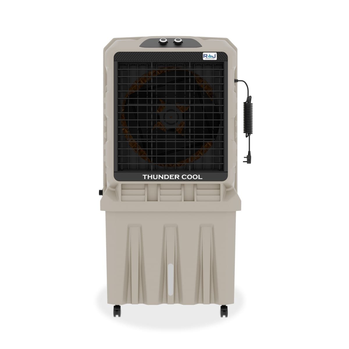 The Thunder Cool 110 AS is a high-performance air cooler with an 18-inch axial fan, ensuring powerful airflow for spaces up to 500 sq. ft. Its 3-side honeycomb pads enhance cooling efficiency, providing long-lasting comfort.