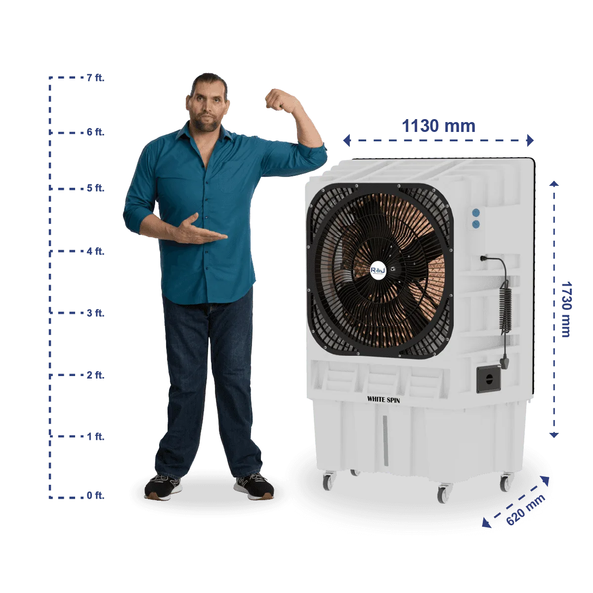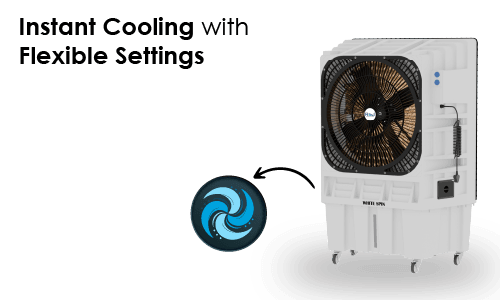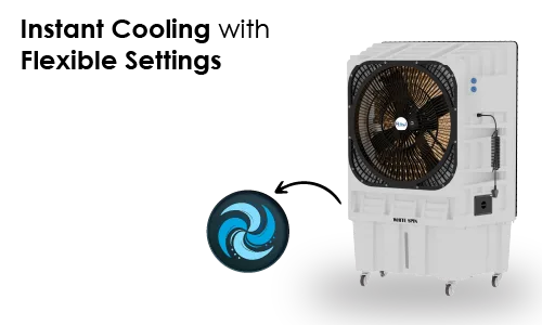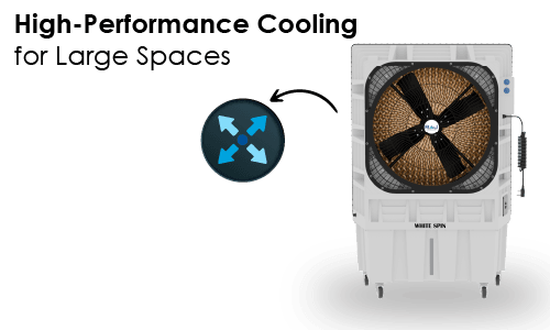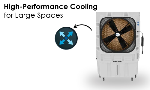 The WHITESPIN 30190 is engineered for high-performance cooling in expansive areas like halls, outdoor events, and industrial sites. Its 190-litre water tank provides extended runtime, minimizing the need for frequent refills. The advanced honeycomb pads work efficiently to deliver cool, moist air, enhancing comfort even in dry climates.